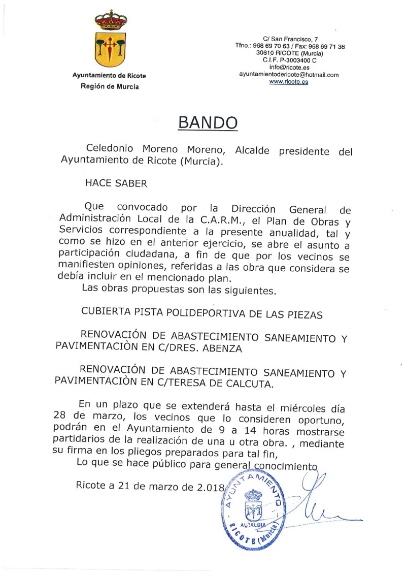 BANDO CONVOCATORIA JUEZ DE PAZ