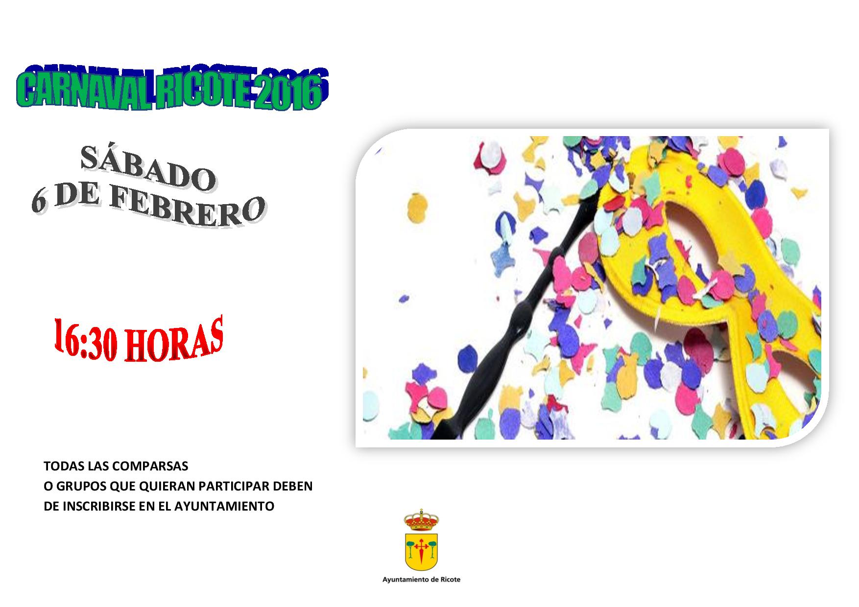CARNAVAL DE RICOTE 2016 PARA MÁS INFORMACIÓN SOBRE HORARIO E INSCRIPCIONES: PINCHA AQUÍ Comparte en FacebookTweet