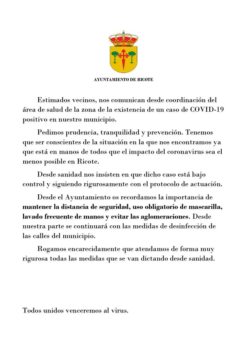 COMUNICADO OFICIAL AYUNTAMIENTO DE RICOTE