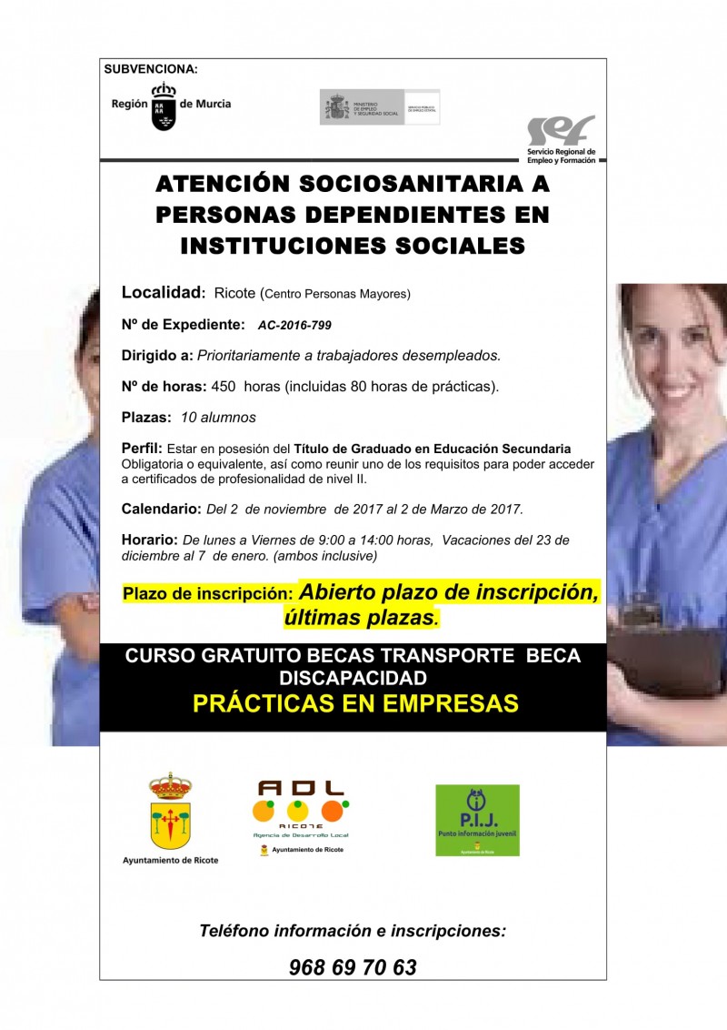 CURSO ATENCIÓN SOCIOSANITARIA A PERSONAS DEPENDIENTES EN INSTITUCIONES SOCIALES ÚLTIMAS PLAZAS. Comparte en FacebookTweet