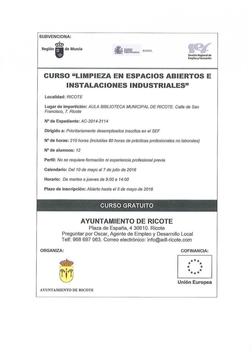 CURSO “LIMPIEZA EN ESPACIOS ABIERTOS DE INSTALACIONES INDUSTRIALES”.