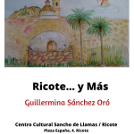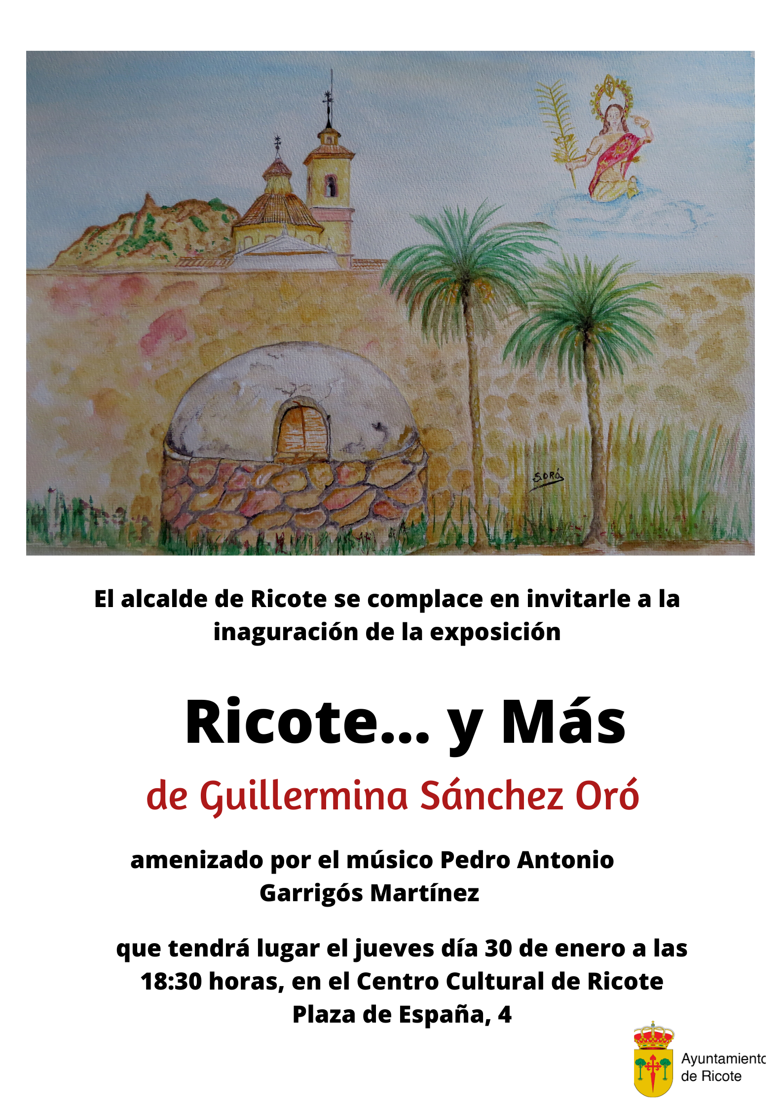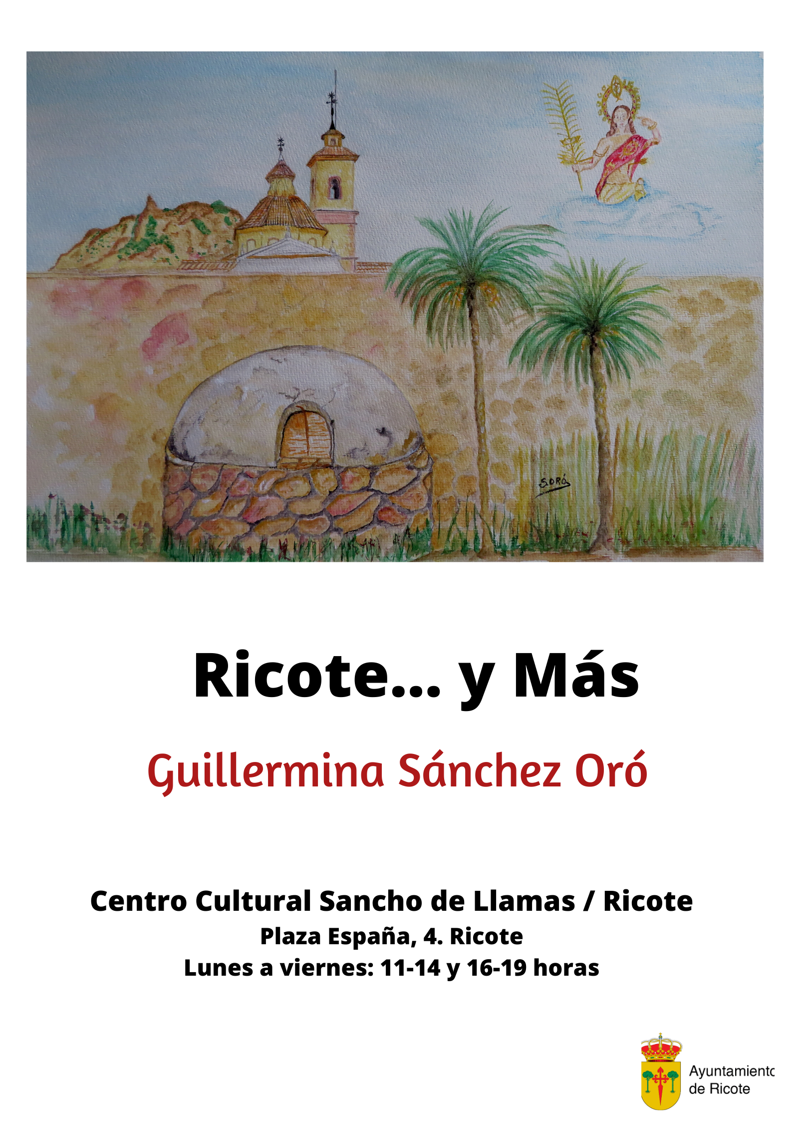 El próximo jueves 30 de enero a las 18:30 h. se inaugura una nueva y atractiva exposición en el Centro Cultural de Ricote. Se trata de “Ricote…y Más”, de Guillermina Sánchez Oró, pintora internacional, gestora cultural y amante del Valle de Ricote.
