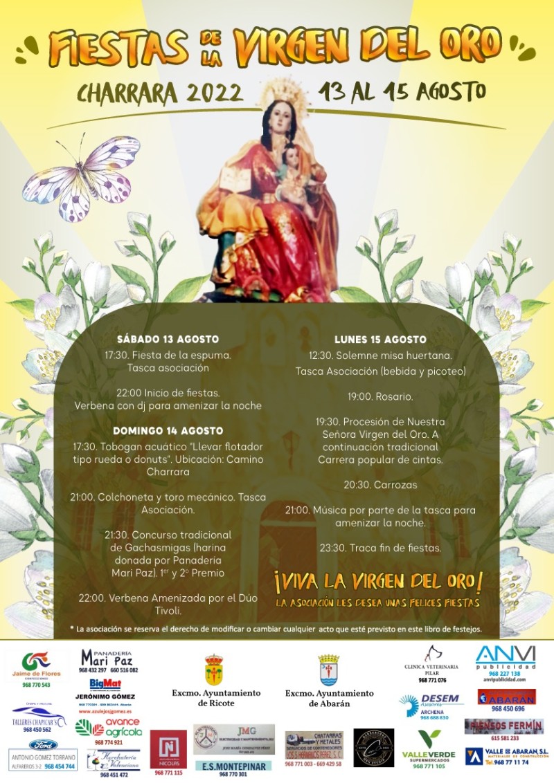 FIESTAS DE LA VIRGEN DEL ORO “CHARRARA” 2022