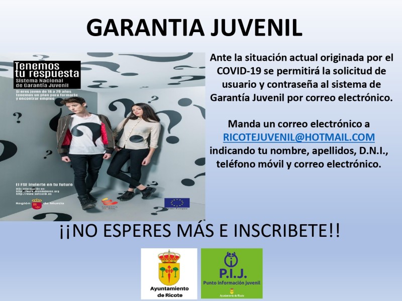 GARANTIA JUVENIL RICOTE DURANTE EL ESTADO DE ALARMA
