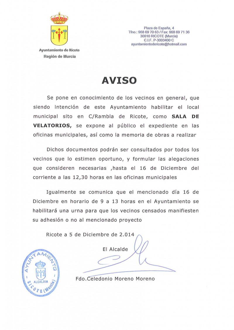 NOTA INFORMATIVA SALA DE VELATORIOS