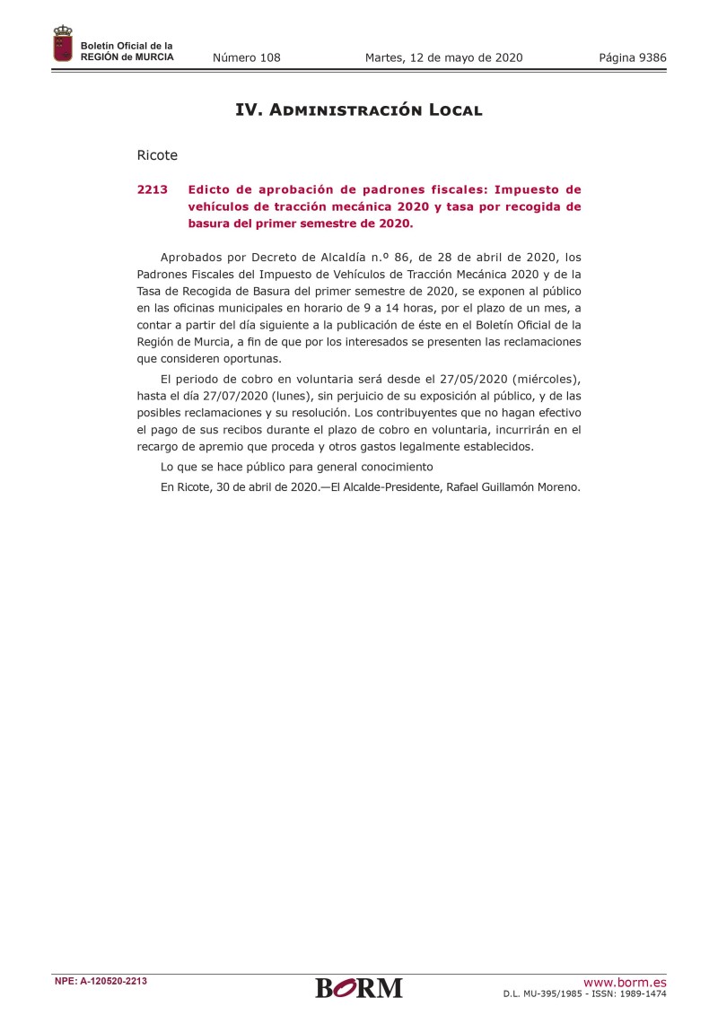 Periodo voluntario de cobra impuesto de vehículos de tracción mecánica y basura 2020 Comparte en FacebookTweet