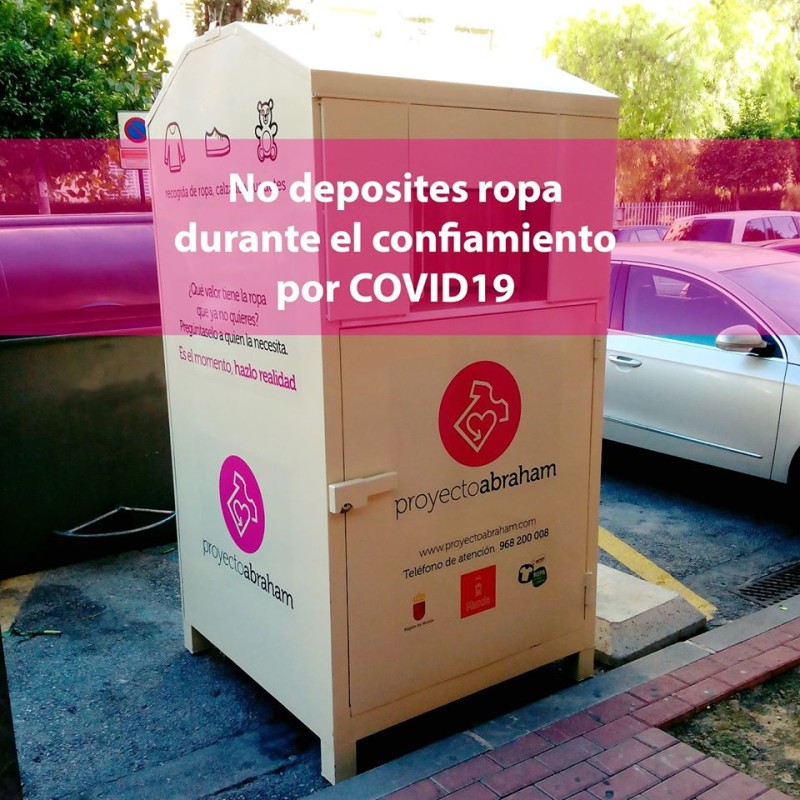 Debido a la situación en la que nos encontramos, en Proyecto Abraham estan con servicios mínimos en la recogida de ropa, calzado y juguetes. Por lo tanto, por tu seguridad y la del resto de ciudadanos, mientras dure el confinamiento por favor no deposites ropa en sus contenedores.