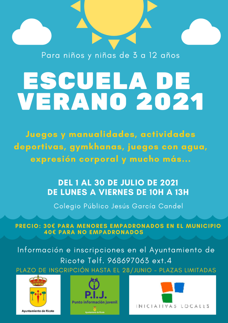 ÚLTIMAS PLAZAS PARA ESCUELA DE VERANO RICOTE 2021