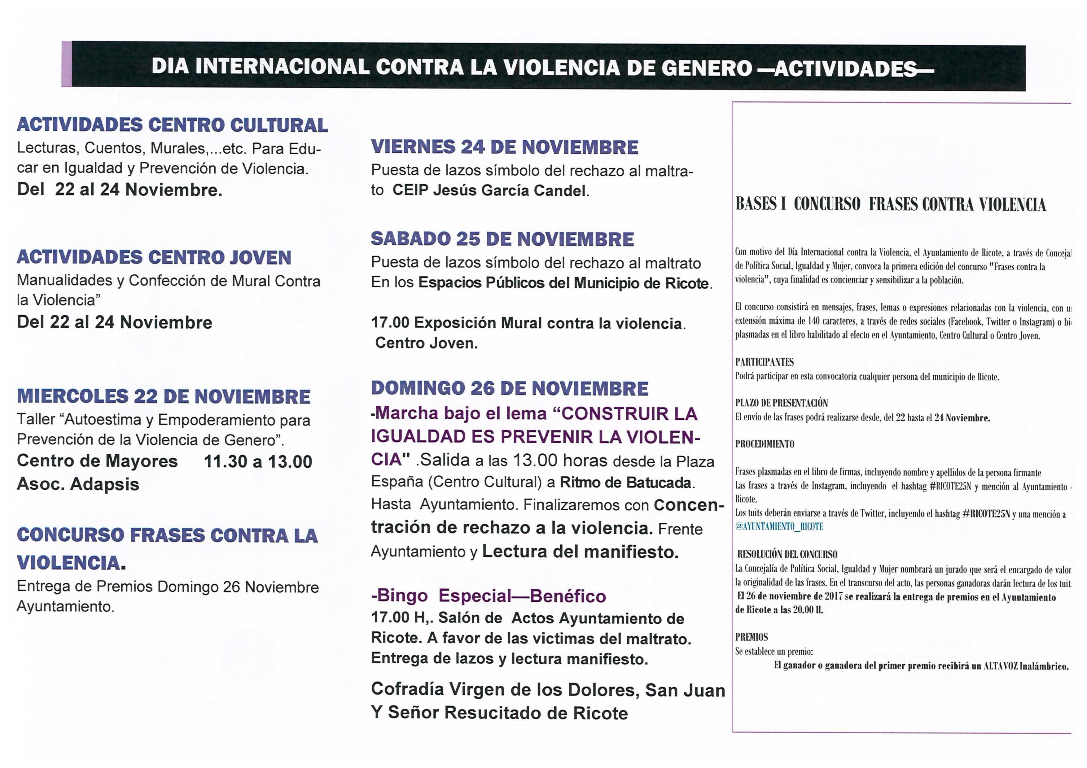 25 Noviembre Día Internacional contra la Violencia de Género. Actividades