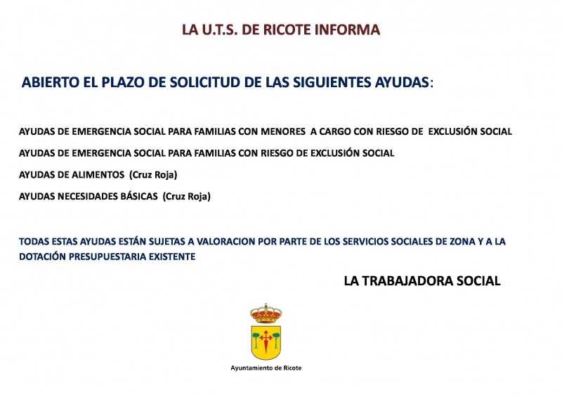 ABIERTO EL PLAZO DE AYUDAS SERVICIOS SOCIALES