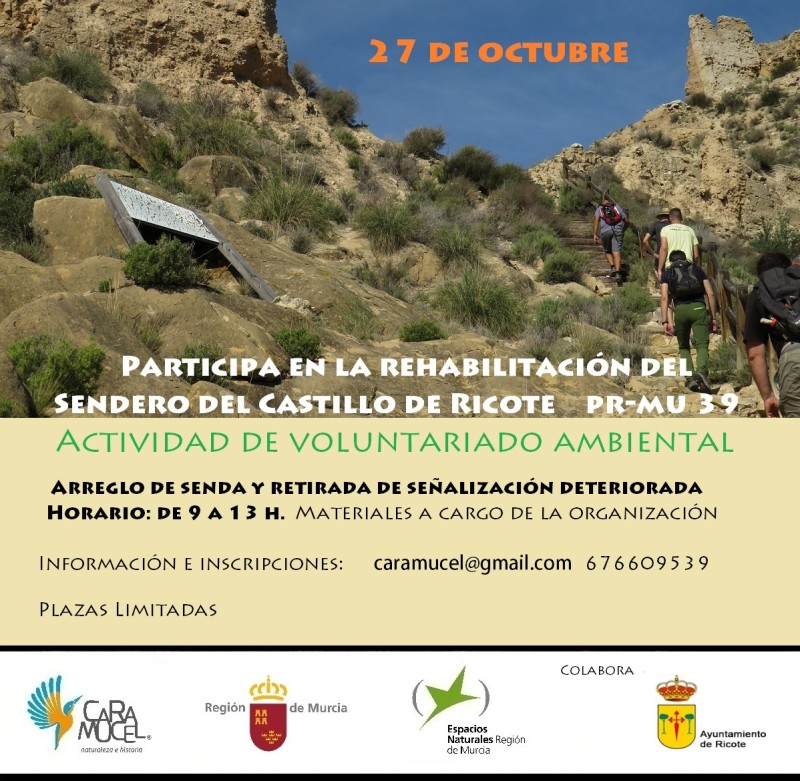 Toda la información en http://ricoteculturayturismo.blogspot.com/2018/10/rehabilitacion-de-la-senda-del-castillo.html