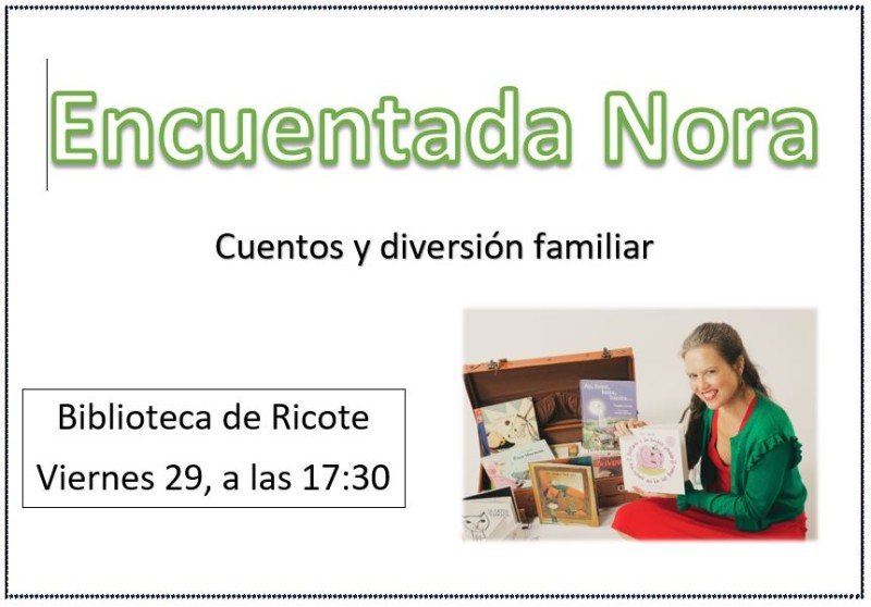 • Cuentacuentos en la Biblioteca con Nora Pellicer, viernes 29 a las 17:30h.
