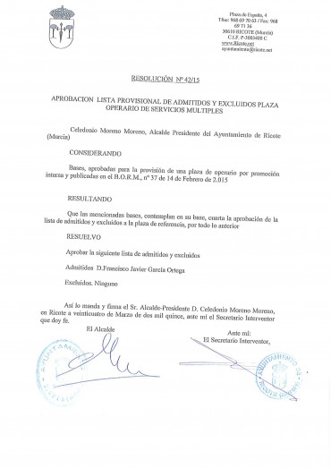 EL AYUNTAMIENTO DE RICOTE APOSTANDO POR LA CULTURA Y EL PATRIMONIO DE RICOTE Y SU VALLE.
