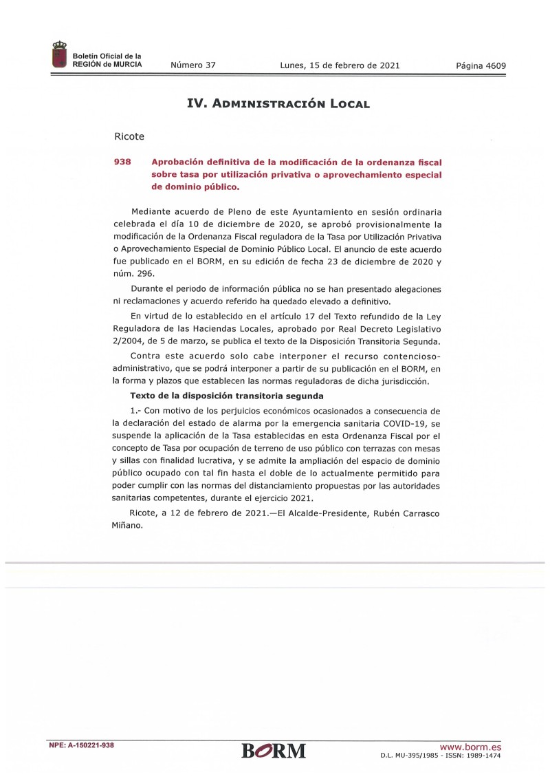 Aprobación definitiva modificación orden aprovechamiento dominio público 2021 Comparte en FacebookTweet