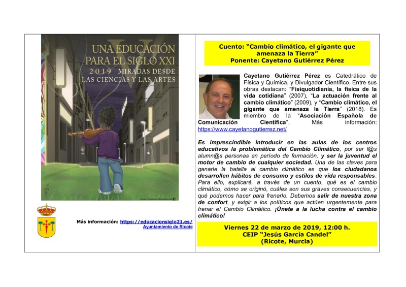El próximo viernes 22, a las 12, en el Colegio, se impartirá una conferencia sobre uno de los problemas más graves que tenemos, el cambio climático. Esa …
