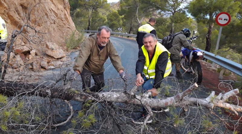 Las carreteras están limpiándose, la más perjudicada es la del salto de la novia RM-522 pero también se trabaja en su despeje. Os seguimos pidiendo precaución y que solo circuléis si es necesario. Para mantener las carreteras accesibles hemos tenido que apoyar con medios propios, incluso esta mañana los alcaldes, de Ricote y Ojós, colaboraban con la retirada de un pino que impedía el paso por uno de los accesos al campo. Demos gracias porque no hayan habido afectaciones graves. Seguimos trabajando. Un abrazo a todos.