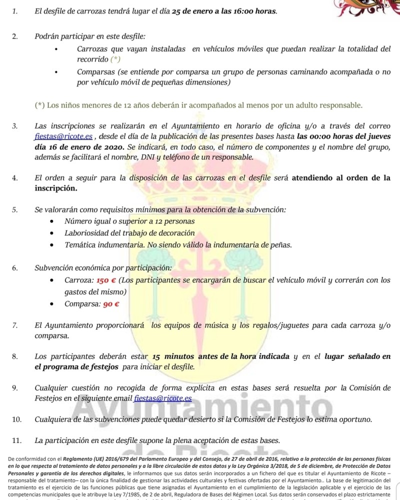 En el siguiente enlace podrán descargar las bases para la participación en el Desfile de Carrozas de las Fiestas de Ricote 2020, que se celebrarán el día 25 de enero.