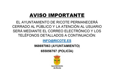 El horario del Servicio de Biblioteca del Centro Cultural de Ricote, de manera provisional, será de lunes a viernes de 11:00 a 14:00 horas y de 16:00 a 19:00 horas.