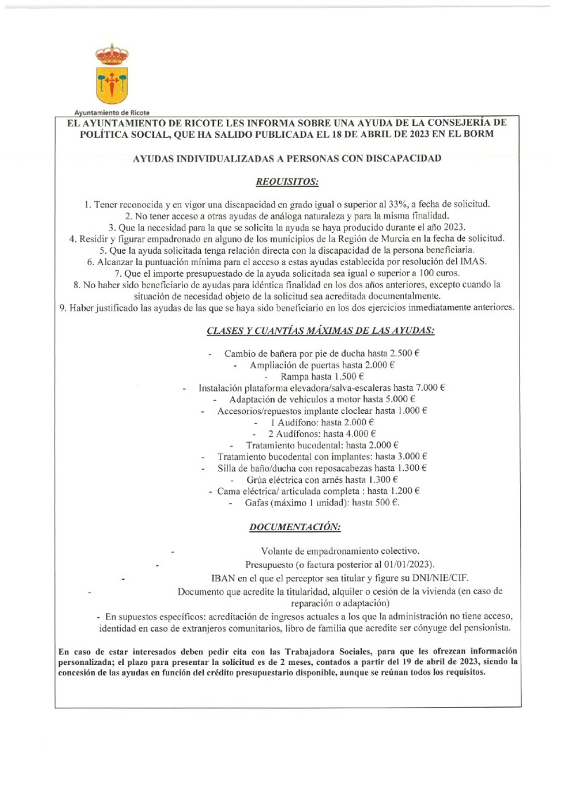 Para todas aquellas personas de Ricote mayores de 65 años, dentro del servicio para la promoción de la autonomía personal y atención a la dependencia, …