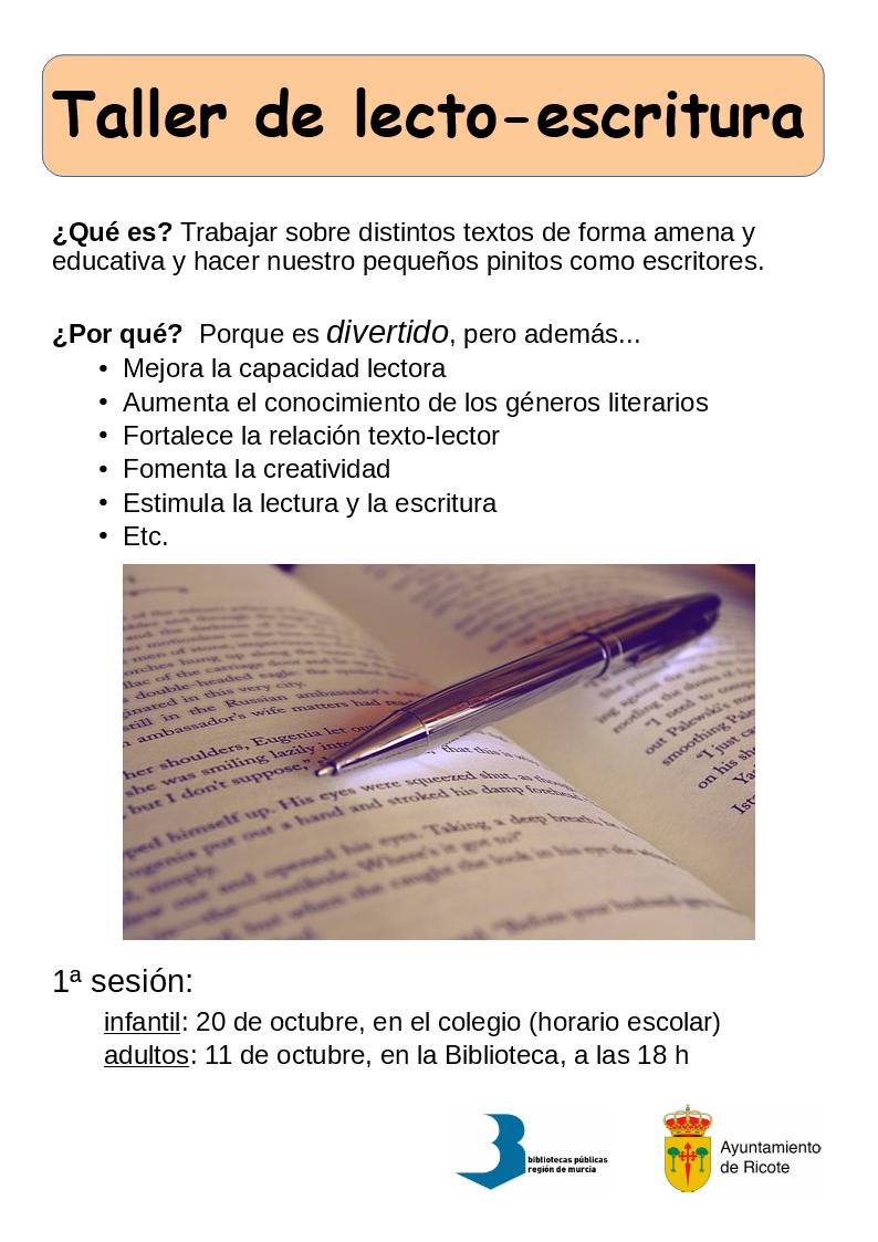 - Taller de lecto-escritura: empieza el miércoles 11 a las 18 h.
