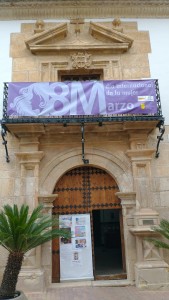 Colocación de pancartas para conmemorar el Día Internacional de la Mujer.
