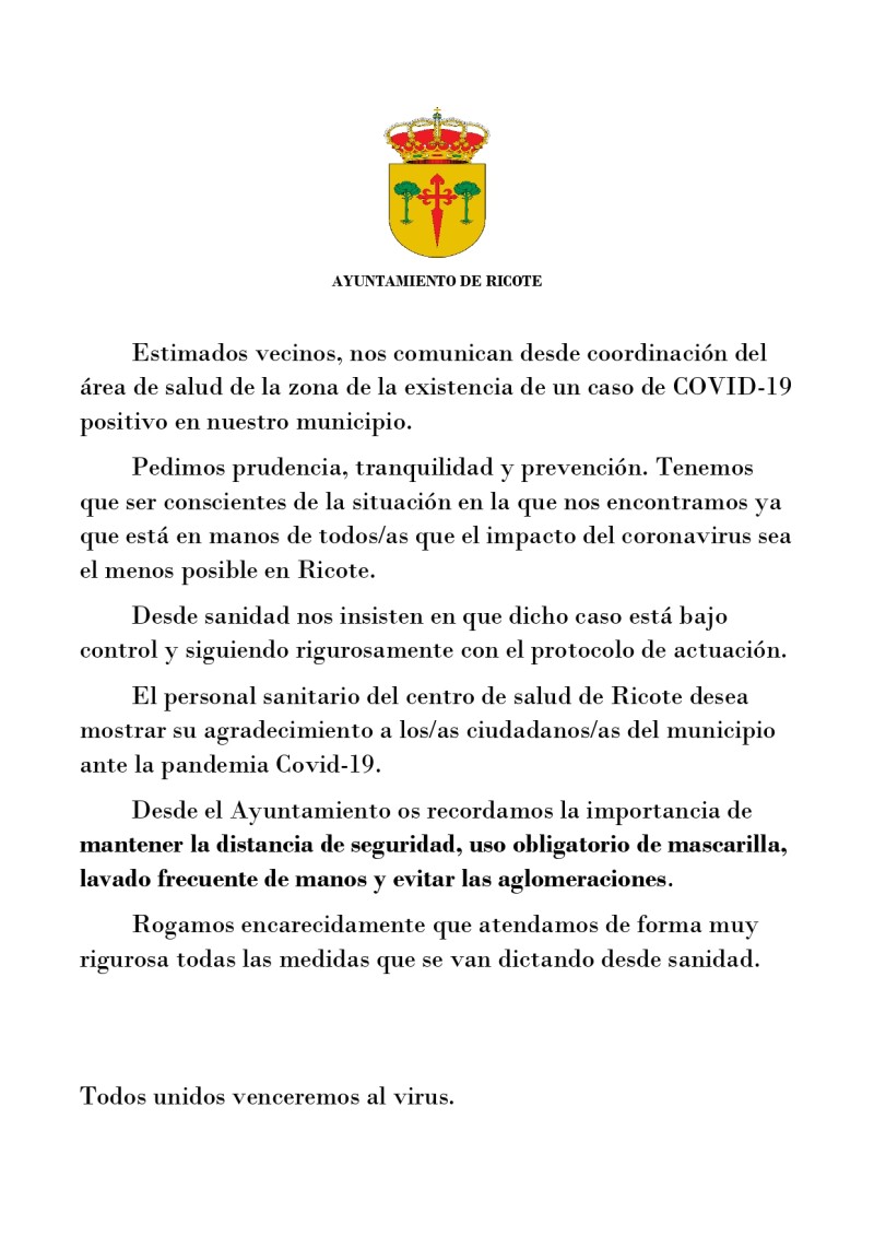 “COMUNICADO OFICIAL COVID-19 RICOTE”