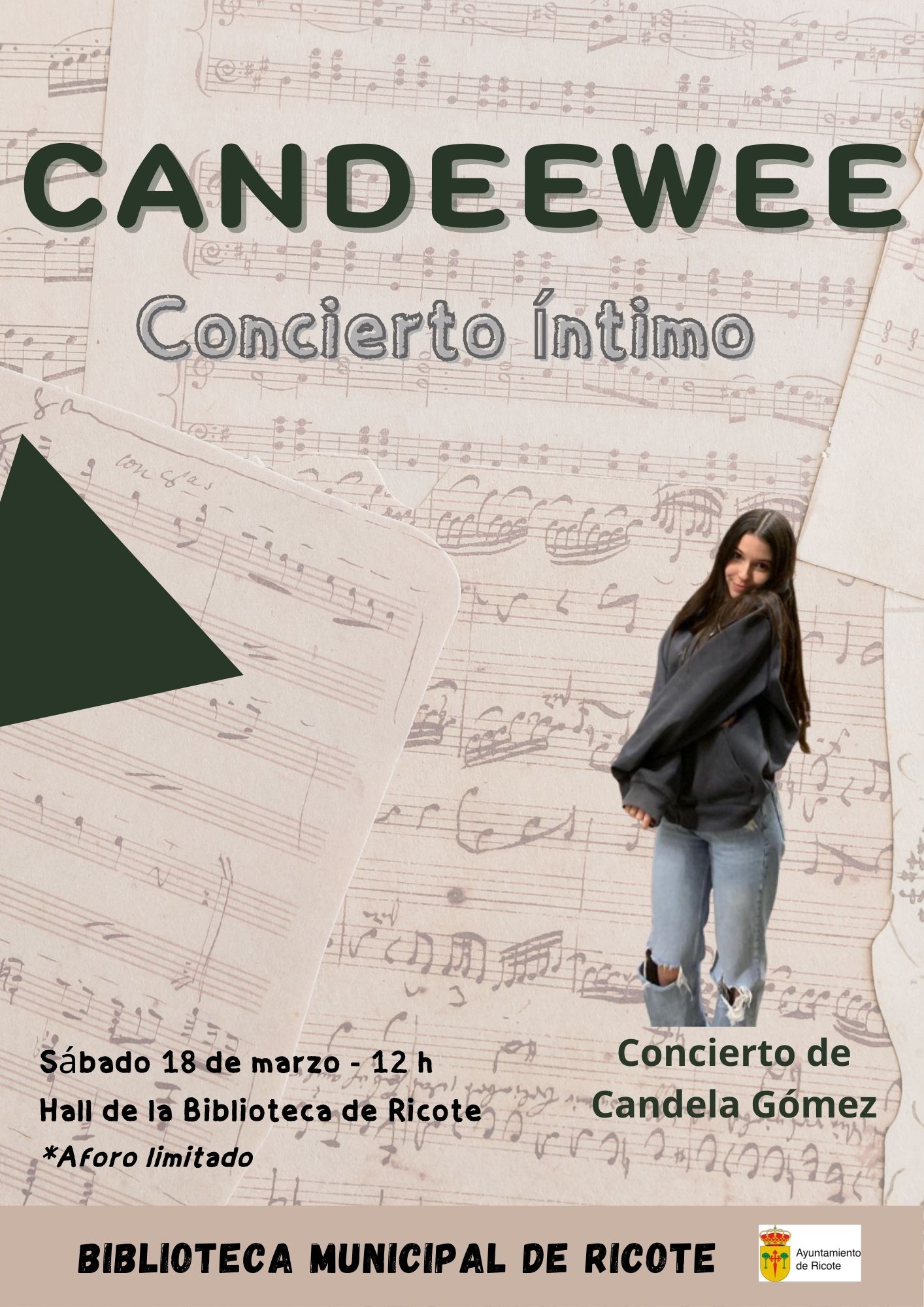 El sábado 18 de marzo a las 12 h. habrá un concierto de Candela Gómez, dentro del ciclo “Tañidos del alma”. Esta joven, de ascendencia ricoteña, nos ofrecerá un concierto en formato pequeño, con aforo limitado, en un entorno íntimo y encantador como es el Palacio de Llamas, donde se ubica el Centro Cultural.