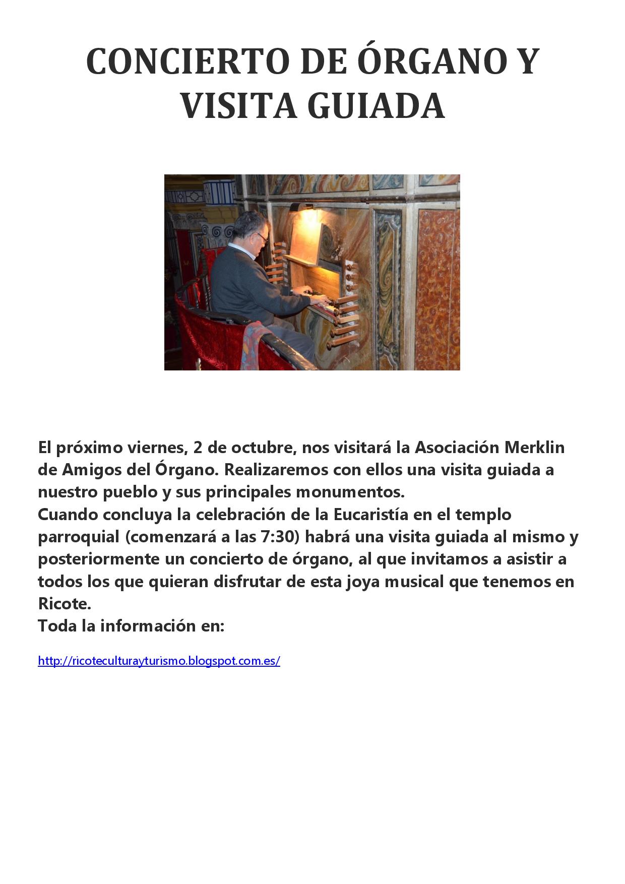 CONCIERTO DE ÓRGANO Y VISITA GUIADA VIERNES 2 DE OCTUBRE – Concierto de órgano “Asociación Merklin de Amigos del Órgano”. - Visita guiada. MÁS INFO. Comparte en FacebookTweet