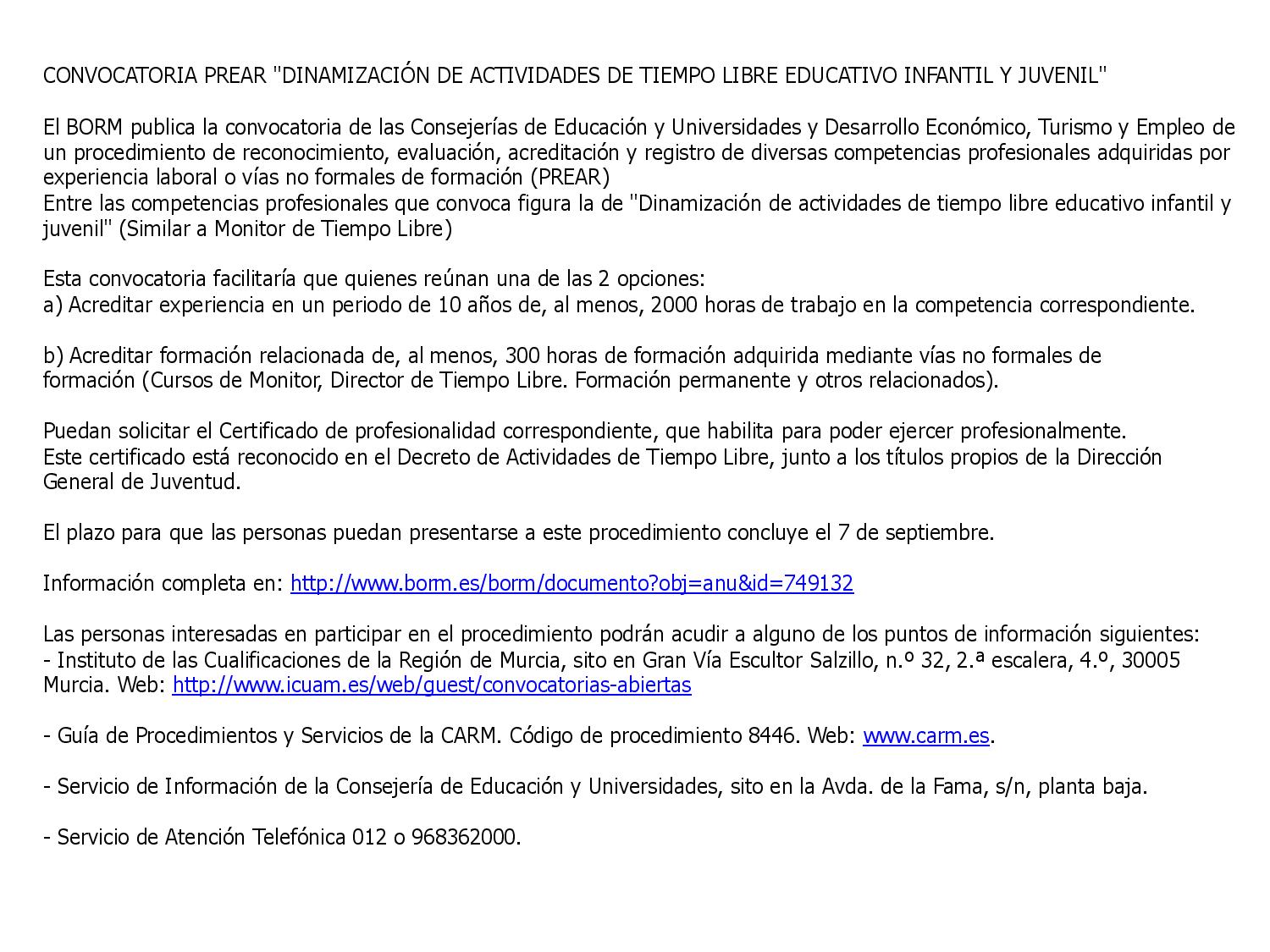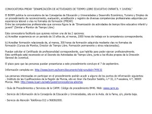 CONVOCATORIA PARA ACREDITACIÓN DE COMPETENCIAS PROFESIONALES (MONITOR DE TIEMPO LIBRE)