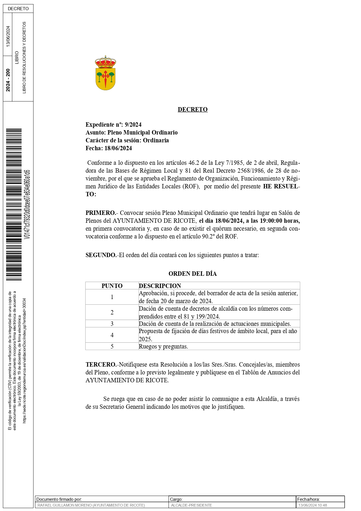 CONVOCATORIA PLENO