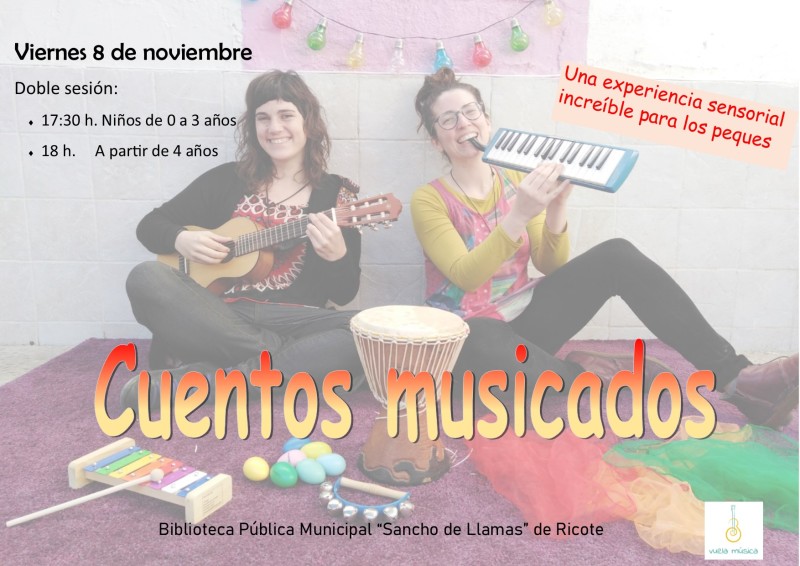 Este viernes 8 de noviembre, en el Centro Cultural “Sancho de Llamas” podremos disfrutar de una experiencia musical dirigida a los más pequeños, de la mano de Vuela Música. Se trata de una actividad que aúna música, cuentos y movimiento, donde se fortalecen los vínculos afectivos y sensoriales en un entorno cálido y divertido.