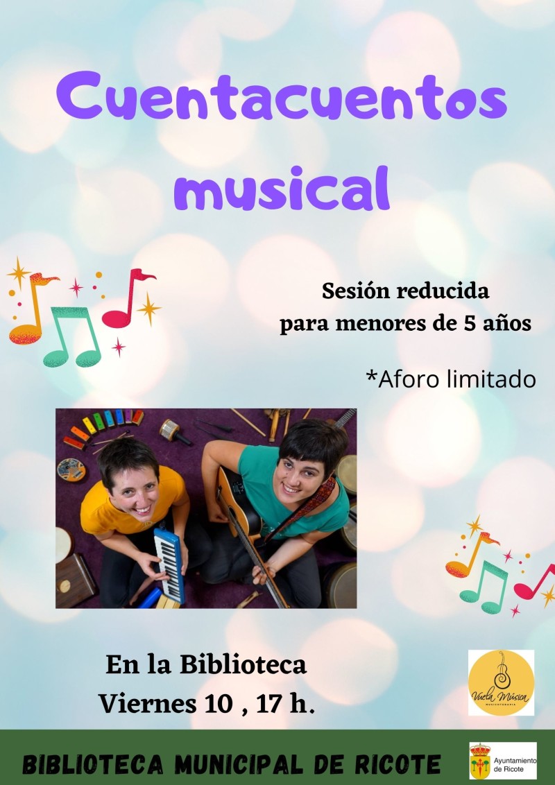 La Biblioteca ha organizado una bonita y pedagógica actividad para los más pequeños; se trata de un cuentacuentos musical de la mano de Vuela Música, dos expertas en musicoterapia y bien conocidas por los habituales de la Biblioteca.