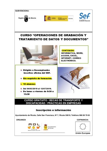 17 PERSONAS DEL MUNICIPIO SE HAN BENEFICIADO DE ESTA ACCIÓN FORMATIVA PROGRAMADA POR LA AGENCIA DE DESARROLLO LOCAL DEL AYUNTAMIENTO DE RICOTE.