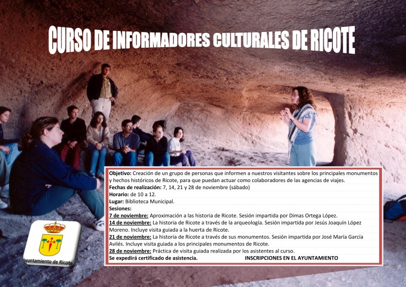 Objetivo: Creación de un grupo de personas que informen a nuestros visitantes sobre los principales monumentos y hechos históricos de Ricote, para que puedan actuar como colaboradores de las agencias de viajes.