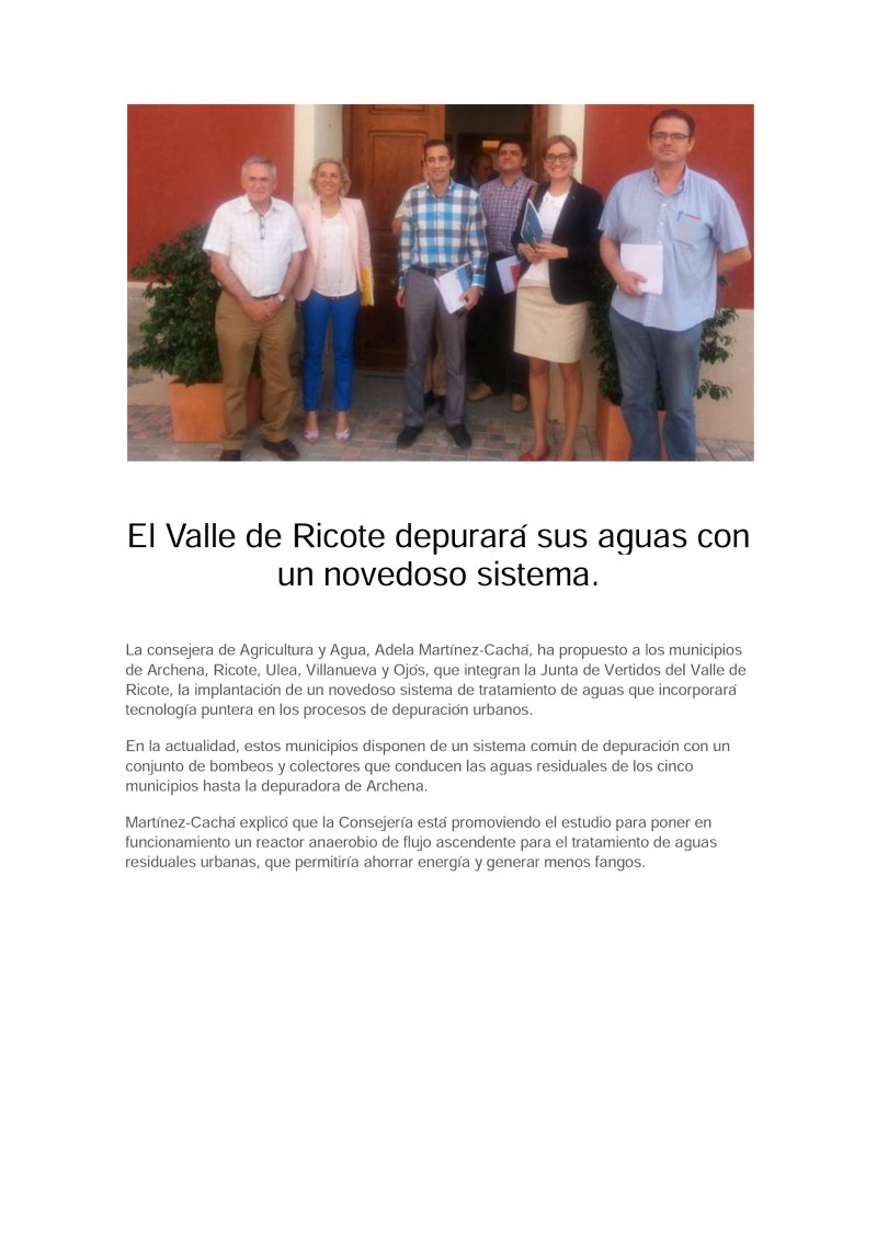 El Valle de Ricote depurará sus aguas con un novedoso sistema.