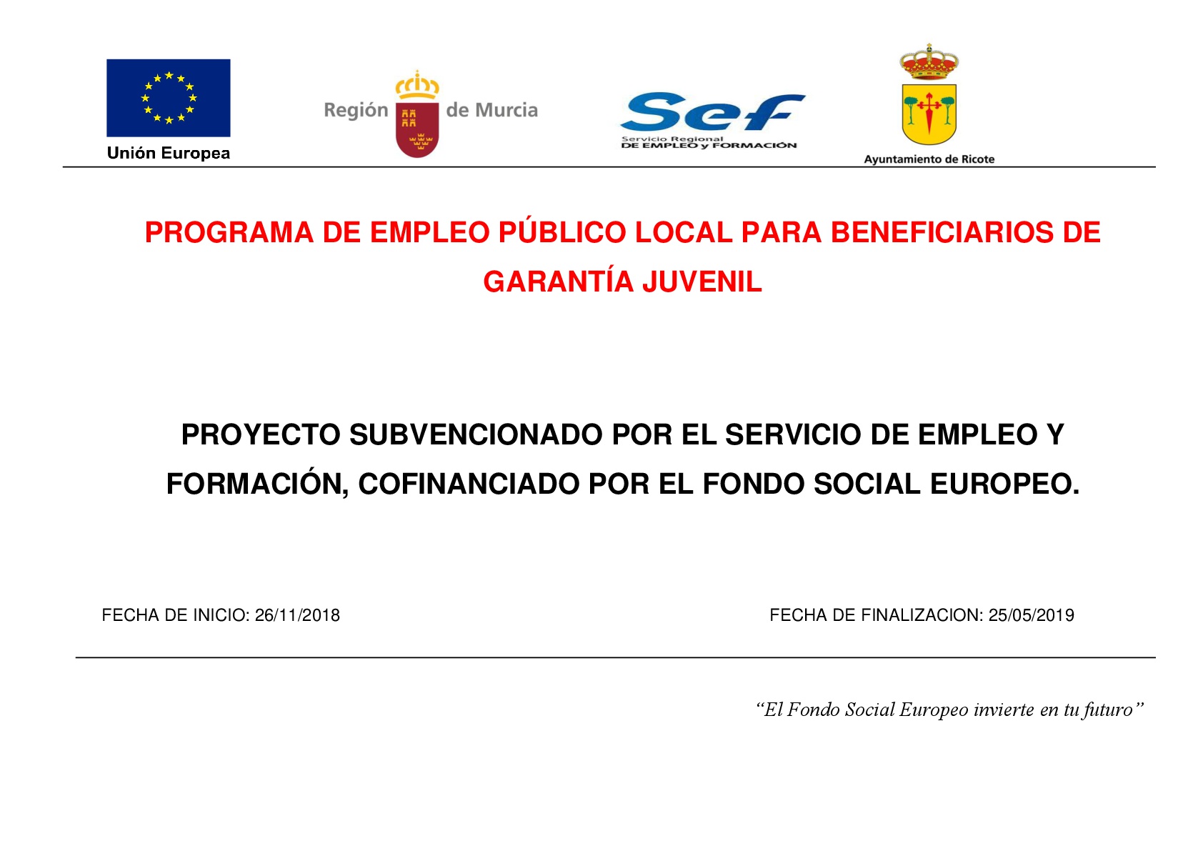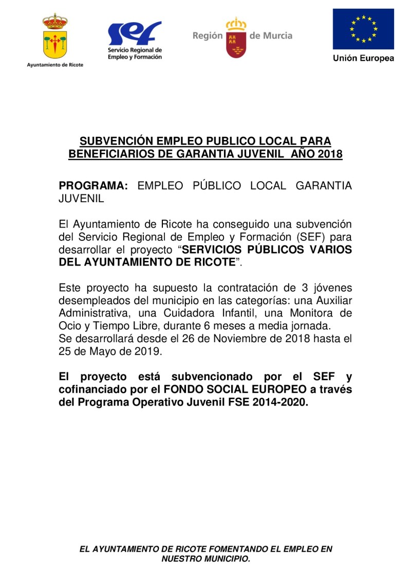 EMPLEO PÚBLICO LOCAL PARA BENEFICIARIOS DE GARANTÍA JUVENIL 2018