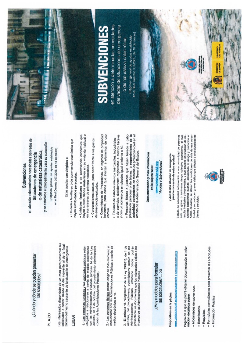Inicio / Destacados / Folleto informativo del Ministerio de Interior, relativo a subvenciones ante situaciones de emergencias o de catástrofes, para su información a la población.