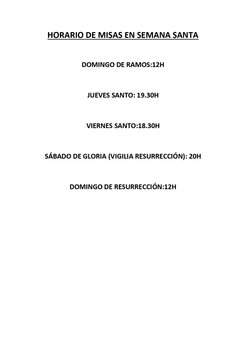 HORARIO DE MISAS EN SEMANA SANTA
