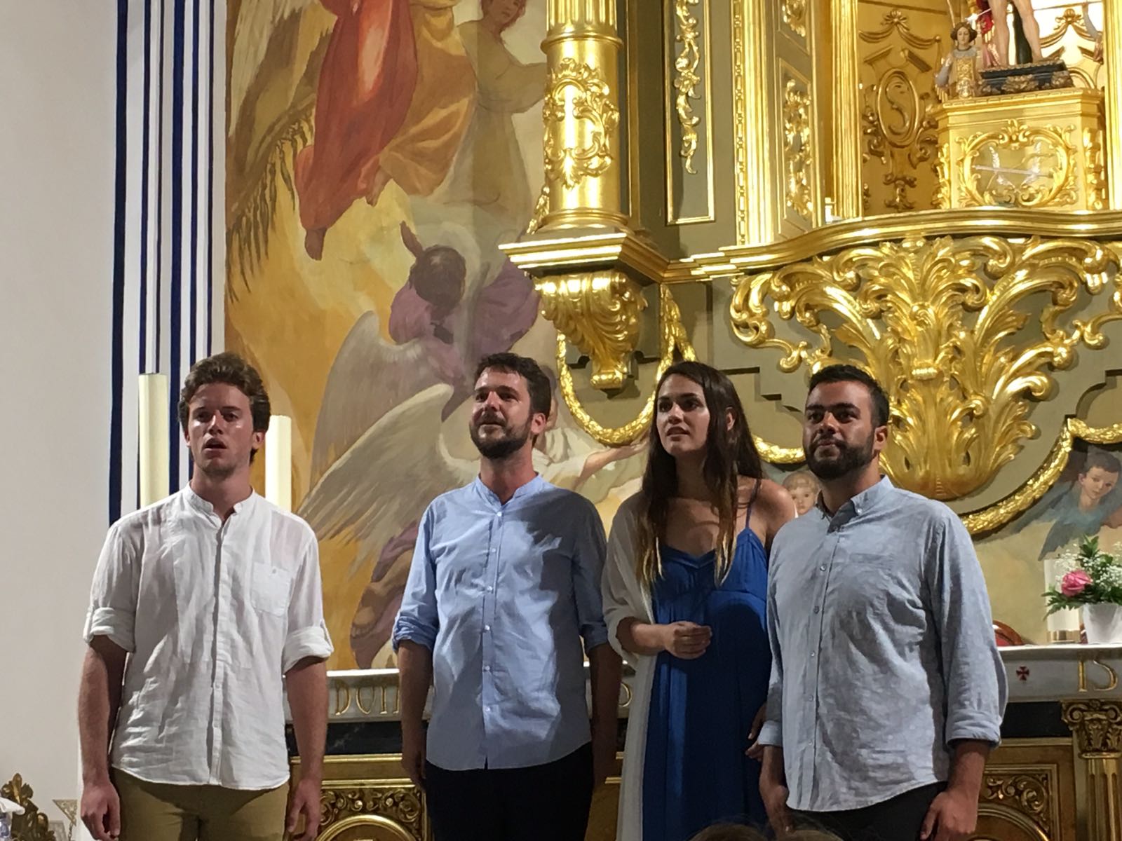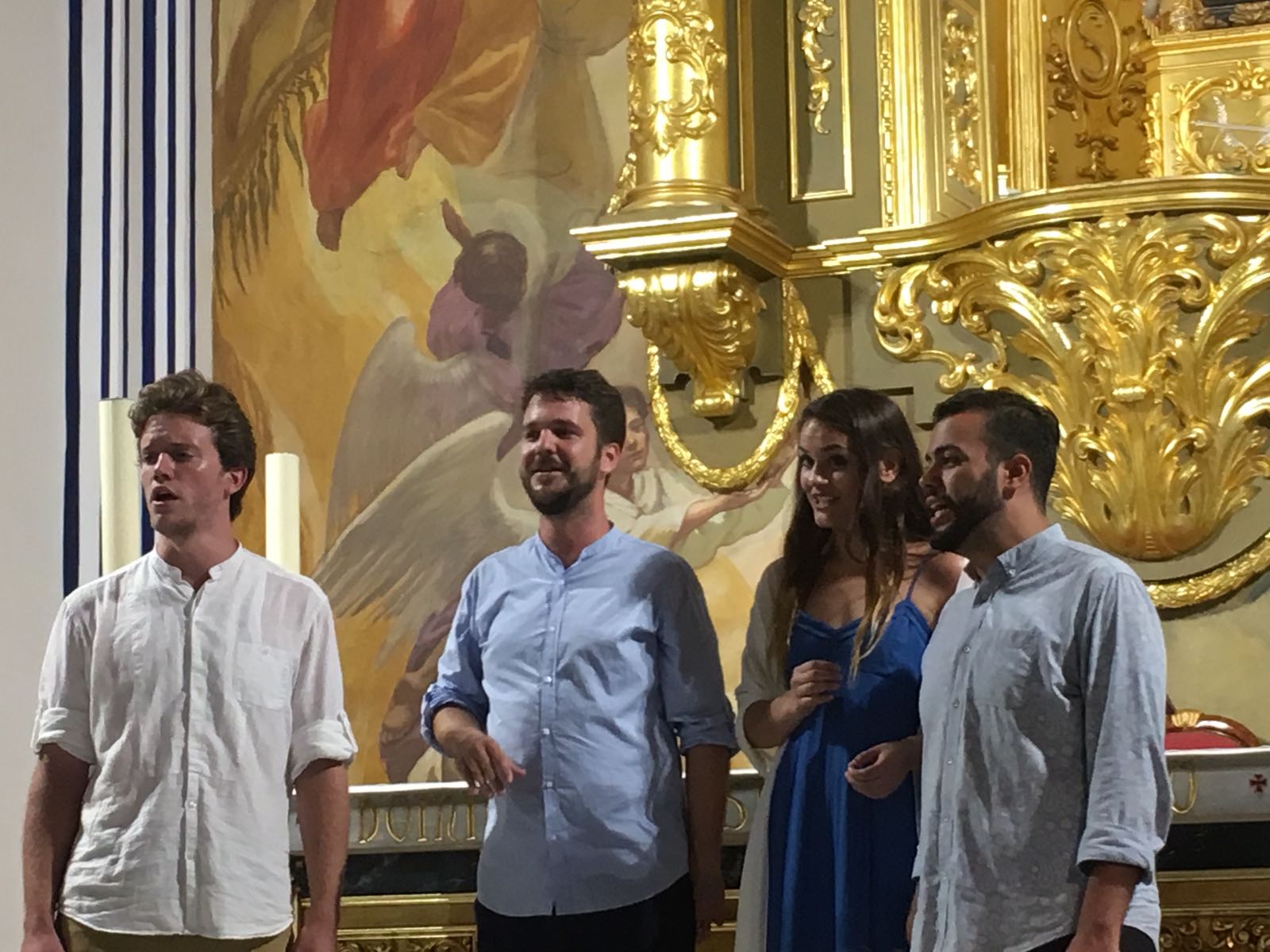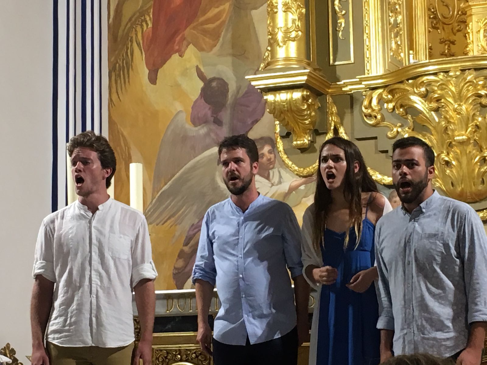 El punto final lo puso de una forma magnífica el grupo Cantoría, un ensemble compuesto por jóvenes profesionales de la música formados en la Escuela Superior de Música de Cataluña, dirigidos por Jorge Losana e integrado además de por su director por Inés Alonso, Samuel Tapia y Valentín Miralles.
