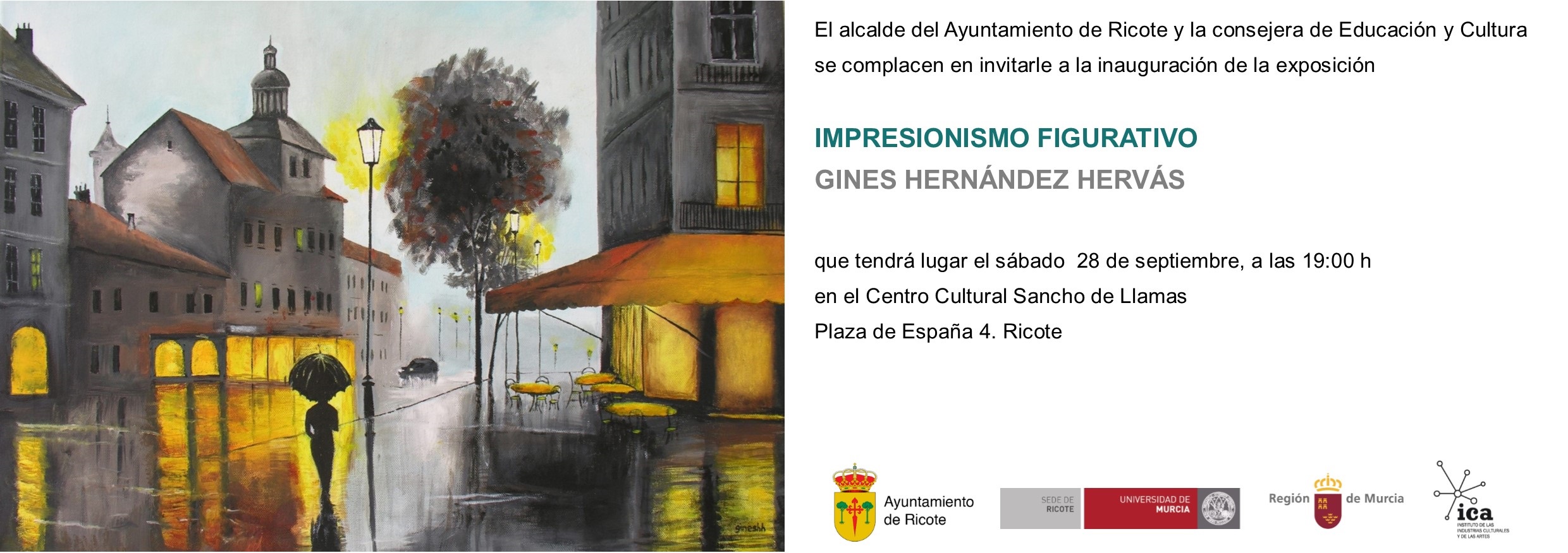 Tras los fenómenos meteorológicos y sus consecuencias, se va a inaugurar la exposición de Ginés Hernández Hervás “Impresionismo figurativo”, la cual puede verse en el recibidor del Centro Cultural hasta el 13 de octubre.