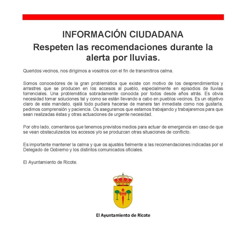 Es importante mantener la calma y que os ajustéis fielmente a las recomendaciones indicadas por el Delegado de Gobierno y los distintos comunicados oficiales.