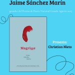 El prestigioso jurado del Premio Nacional de Poesía Joven ‘Grande Aguirre’, formado por Luis Alberto Cuenca, Ignacio Elguero y Juan Carlos Mestre, ha otorgado el galardón de este año al autor murciano, Jaime Sánchez Marín. Su poemario ‘Magritte’ se ha impuesto al más de medio centenar que se han presentado a la XXI edición de este certamen organizado por el Ayuntamiento de San Sebastián de los Reyes.