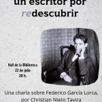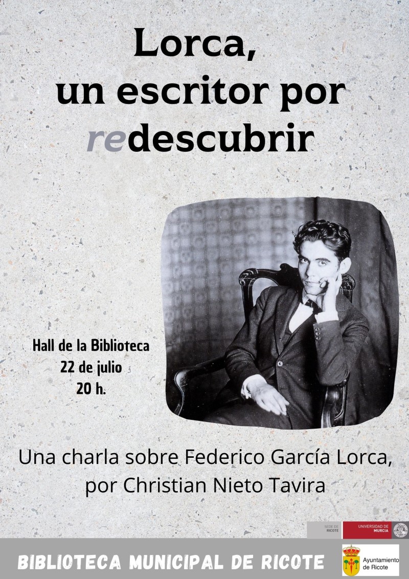 El Centro Cultural ha organizado una actividad en torno a la figura de Federico García Lorca. Se trata de una charla abierta y amena, de la mano de nuestro vecino Christian Nieto Tavira. Se repasarán diversos aspectos de su vida y obra, con la lectura de algunos de sus poemas. El público e interesados están invitados a participar en su lectura.