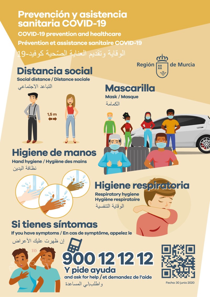 Desde Murciasalud y el Ayuntamiento de Ricote hacemos un llamamiento en diferentes idiomas a la PREVENCIÓN Y ASISTENCIA SANITARIA #COVID19.