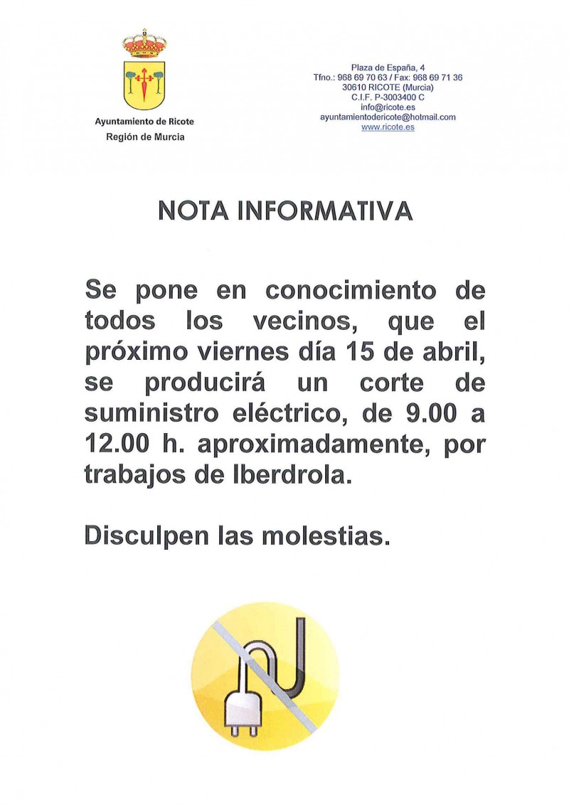 NOTA INFORMATIVA CORTE SUMINISTRO ELÉCTRICO