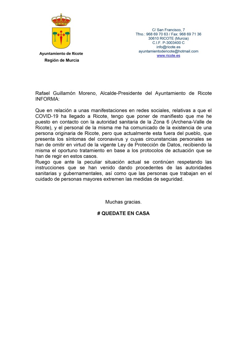 NOTA INFORMATIVA COVID-19