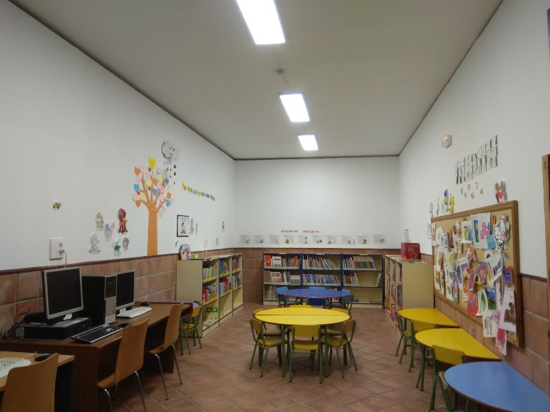 Ya está disponible la nueva iluminación en la sala infantil del centro cultural. Una de las zonas más importantes del edificio, la destinada a los niños y niñas, ya tiene instalada una nueva iluminación. Se han sustituido los antiguos tubos fluorescentes por placas led. Además de ahorro económico en el consumo se consigue algo mucho más importante, aumentar la iluminación de la sala infantil.