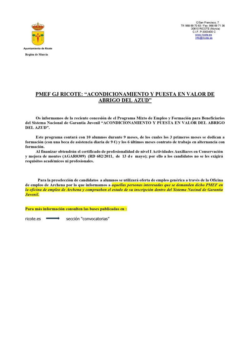 PMEF-GJ “ACONDICIONAMIENTO Y PUESTA EN VALOR DE ABRIGO DEL AZUD”