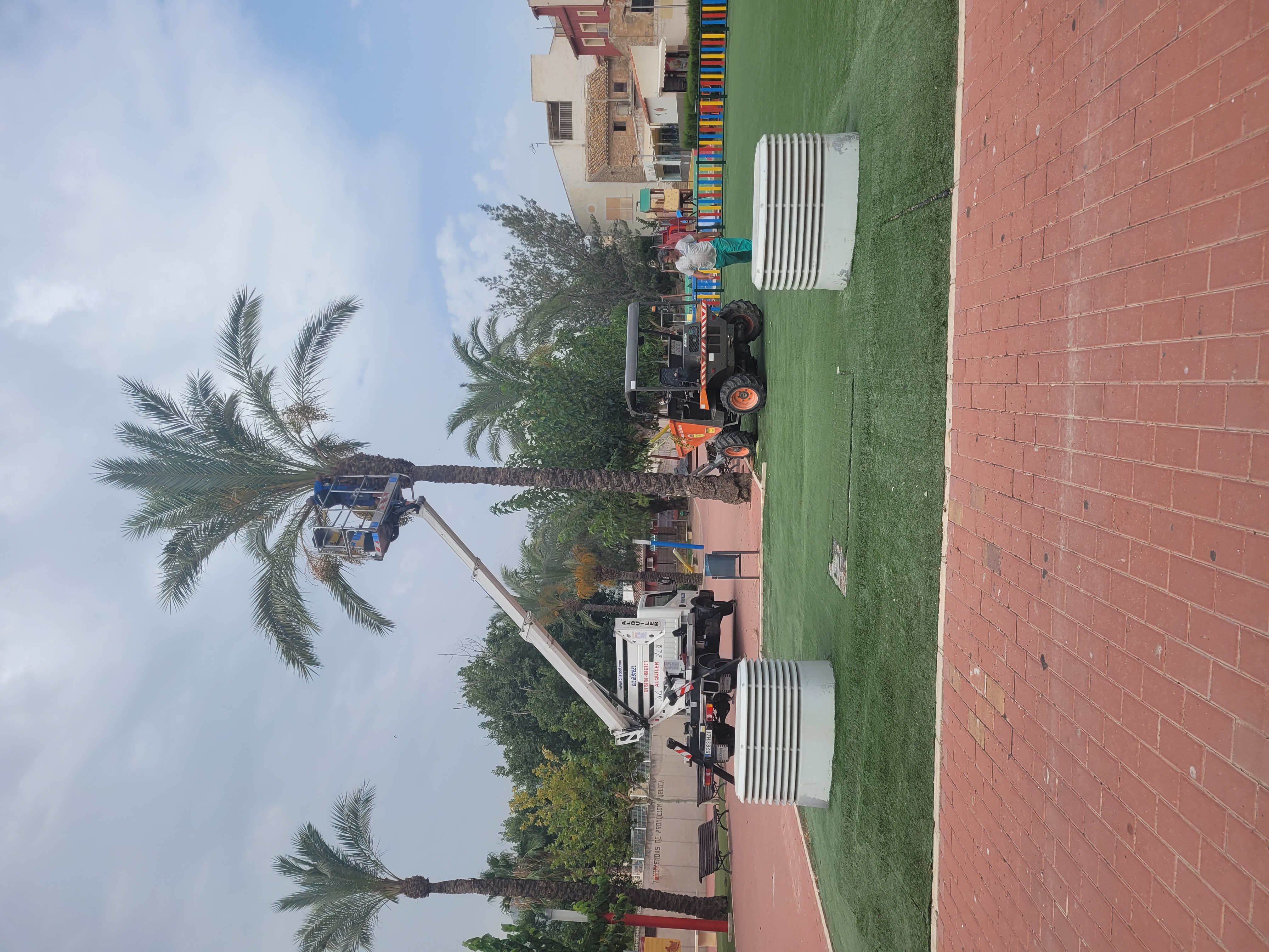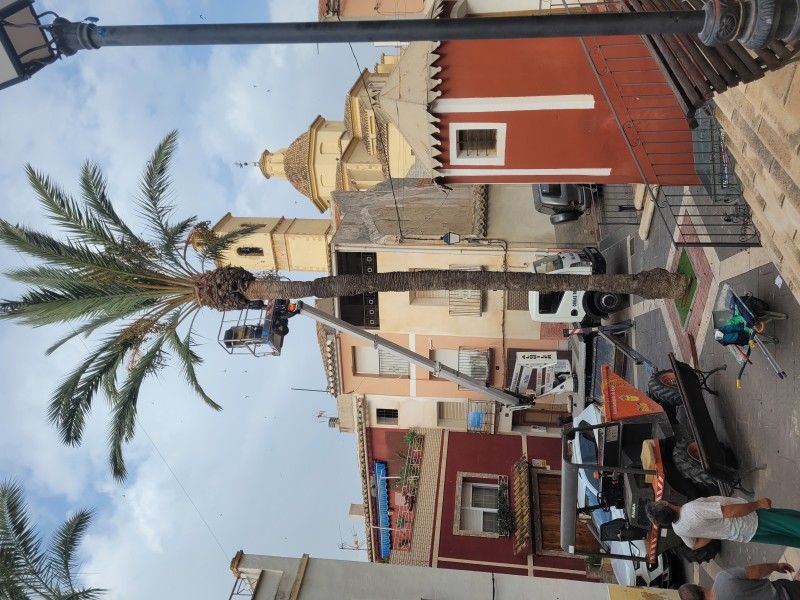 PARA EVITAR ACCIDENTES U OTRO TIPO DE RIESGO PARA LAS PERSONAS SE ESTÁ PROCEDIENDO A LA RETIRADA DE TODOS LOS RACIMOS DE LOS DÁTILES DE TODAS LAS PALMERAS DEL CASCO URBANO.