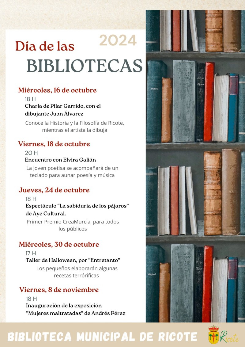 Con motivo del Día de las Escritoras, lunes 14 de octubre, y del Día de las Bibliotecas, 24 de octubre, la Biblioteca de Ricote ha organizado una serie de actividades para todos.